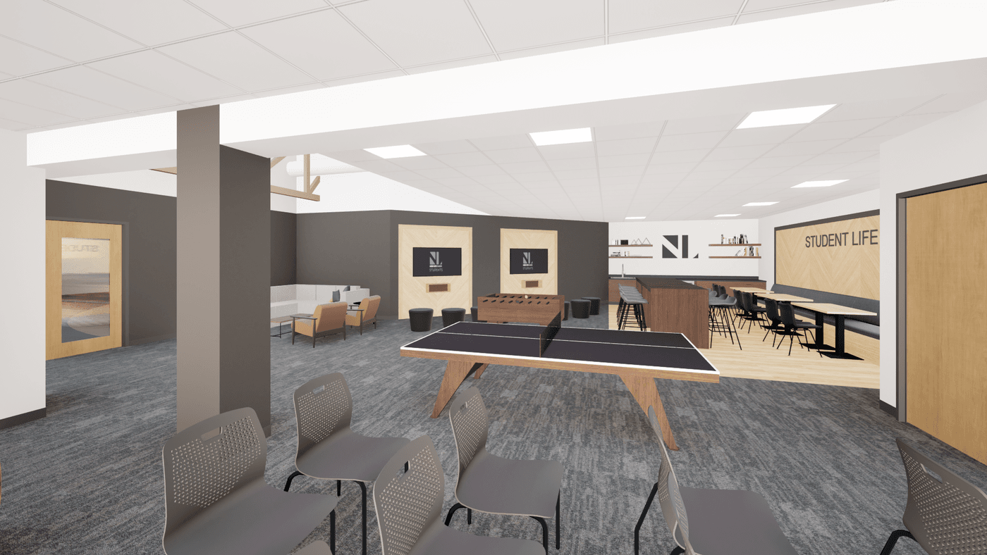 - New furniture: coffee bar, Connection Desk, and KidsLife check-in, and acoustical treatment in the KidsLife area.